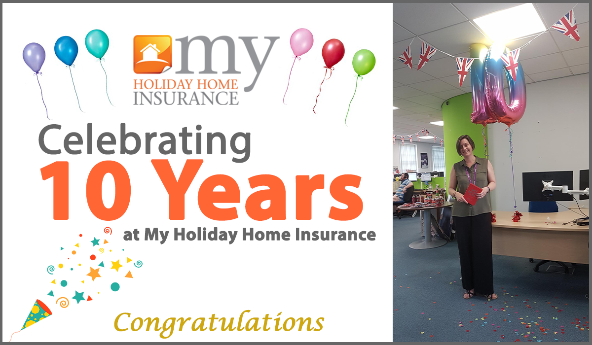 Claire Leech, Director at My Holiday Home Insurance commented, “Kate has been an invaluable member of the team over the last 10 years and I applaud the dedication and contribution made by her on a daily basis. Having Kate on the My Holiday Home Insurance team makes a huge difference and the pride Kate takes in her work is truly inspiring.”